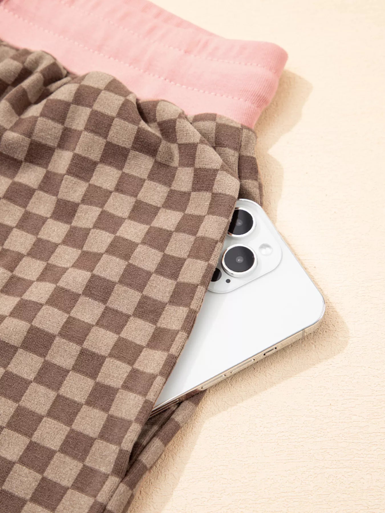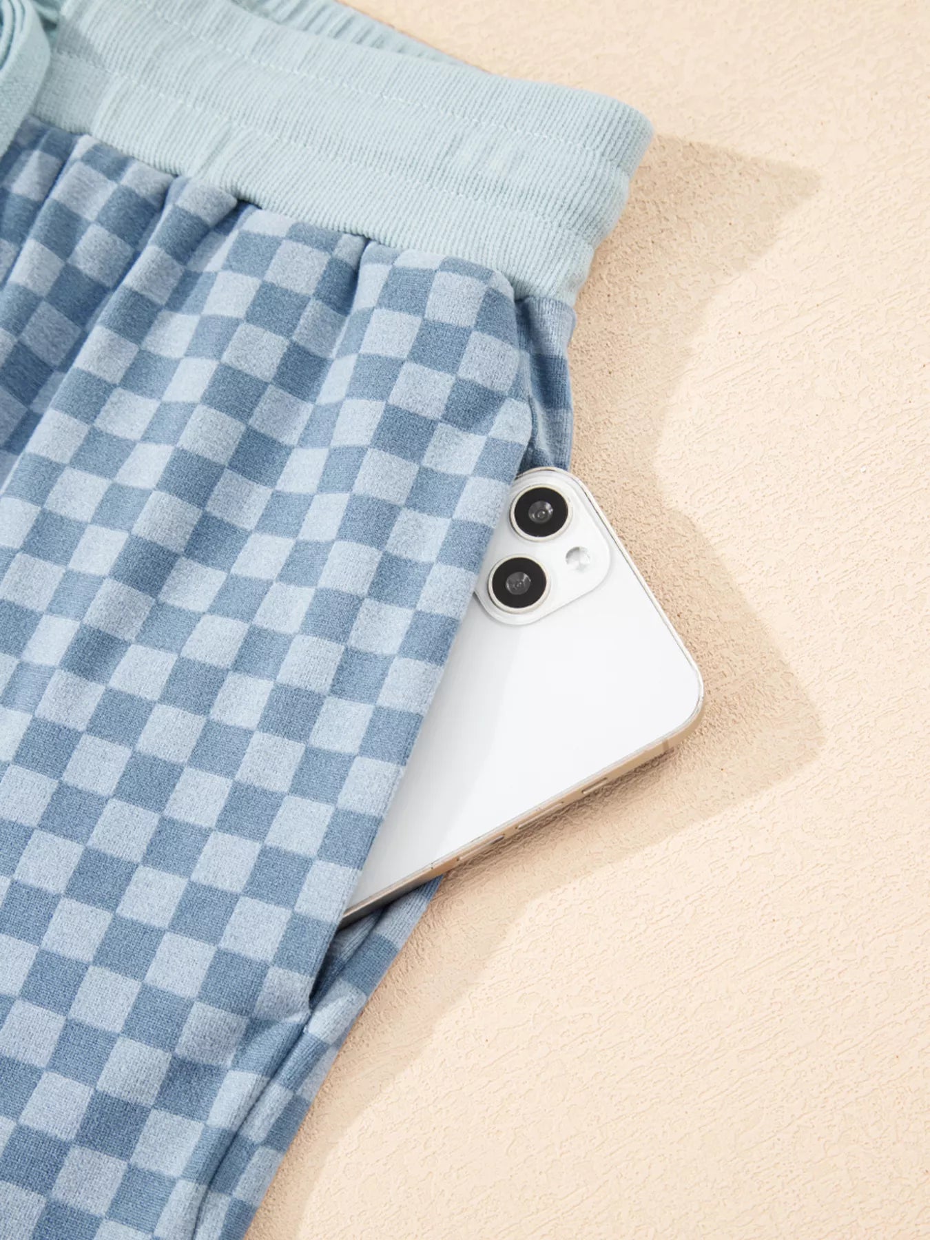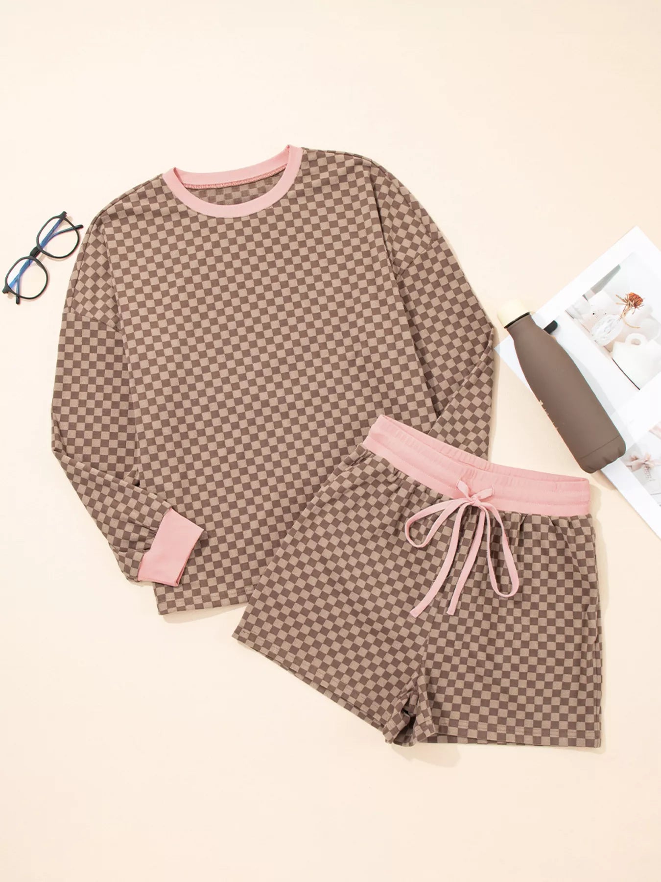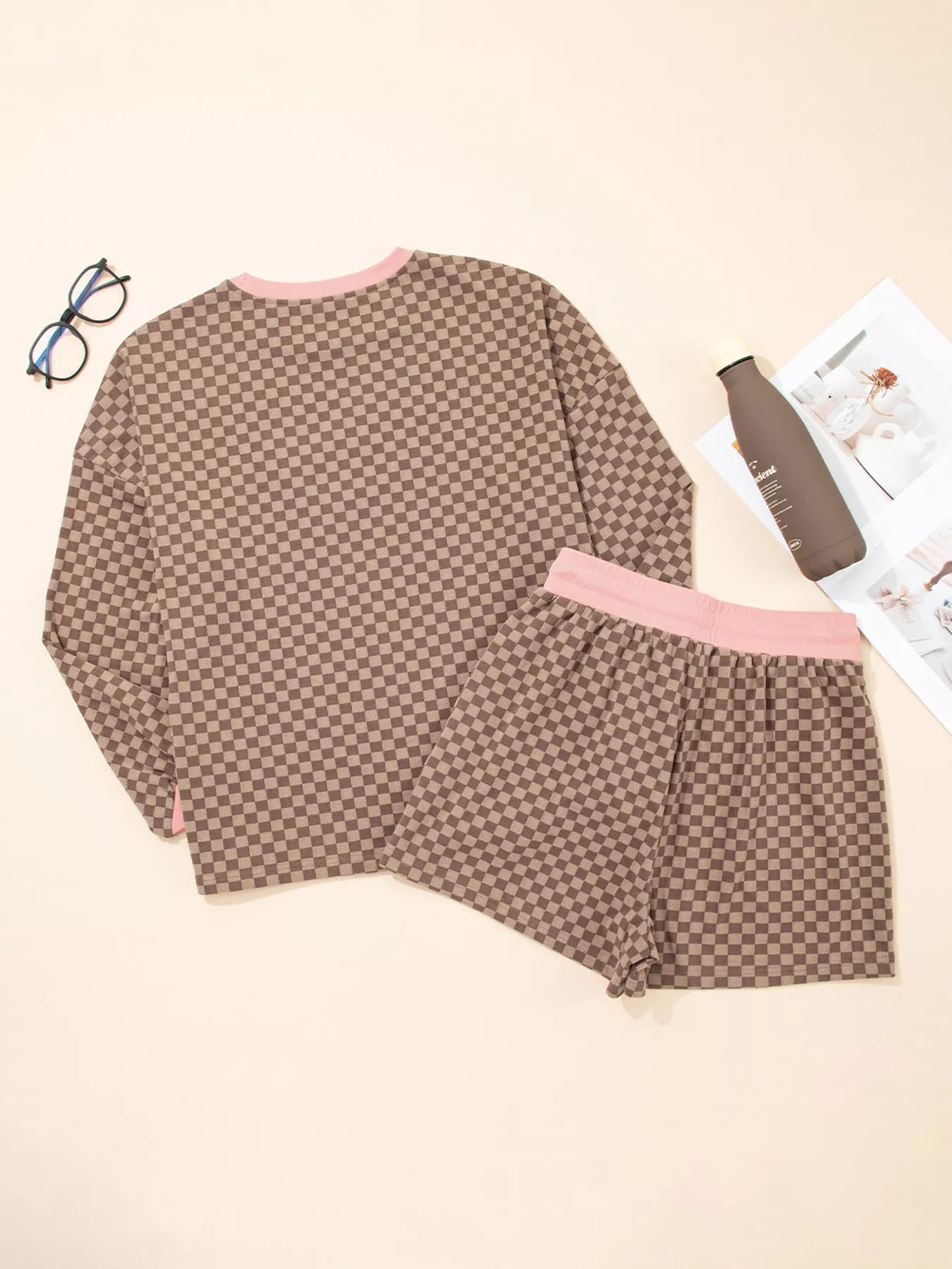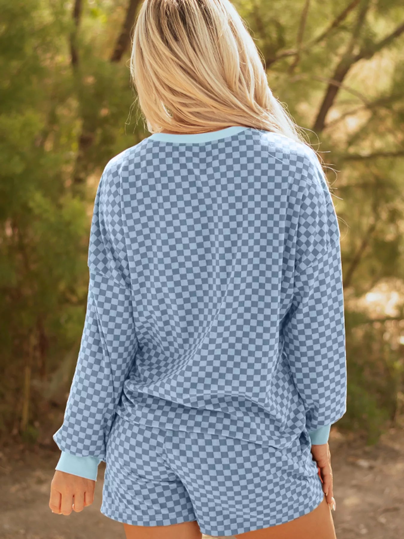 Checkerboard Long Sleeve Pullover and Shorts Set